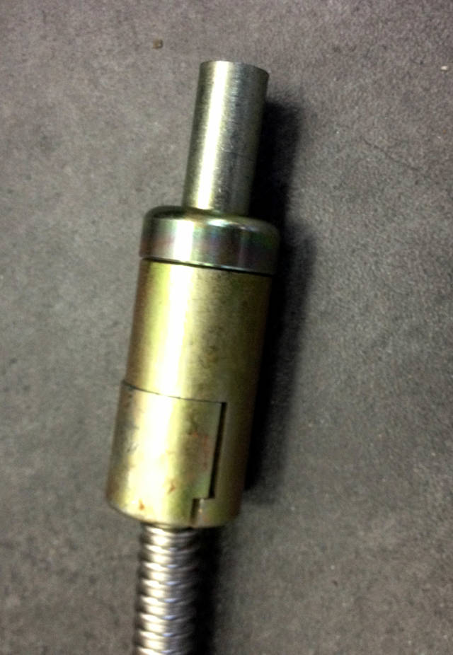 2、准备波纹管专用螺母,利用成型器做接头,将波纹管放入成形器里面,卡住三个波纹格子;